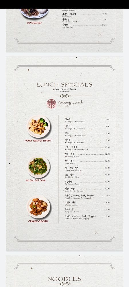 Whether you're a fan of Chinese, Korean, or fusion cuisine, YuXiang Korean Chinese Cuisine has something for every palate. Don't miss out on their Happy Hour specials and outdoor seating options for a delightful dining experience.